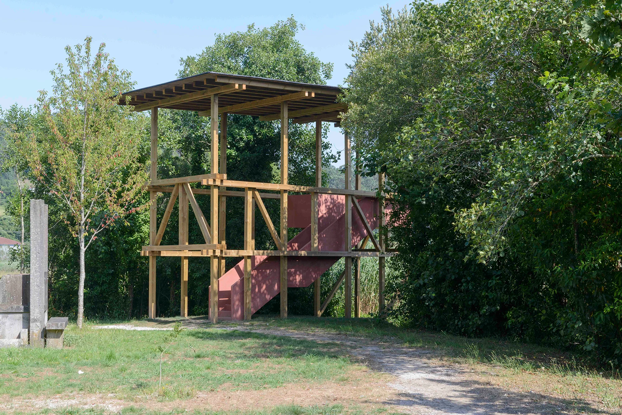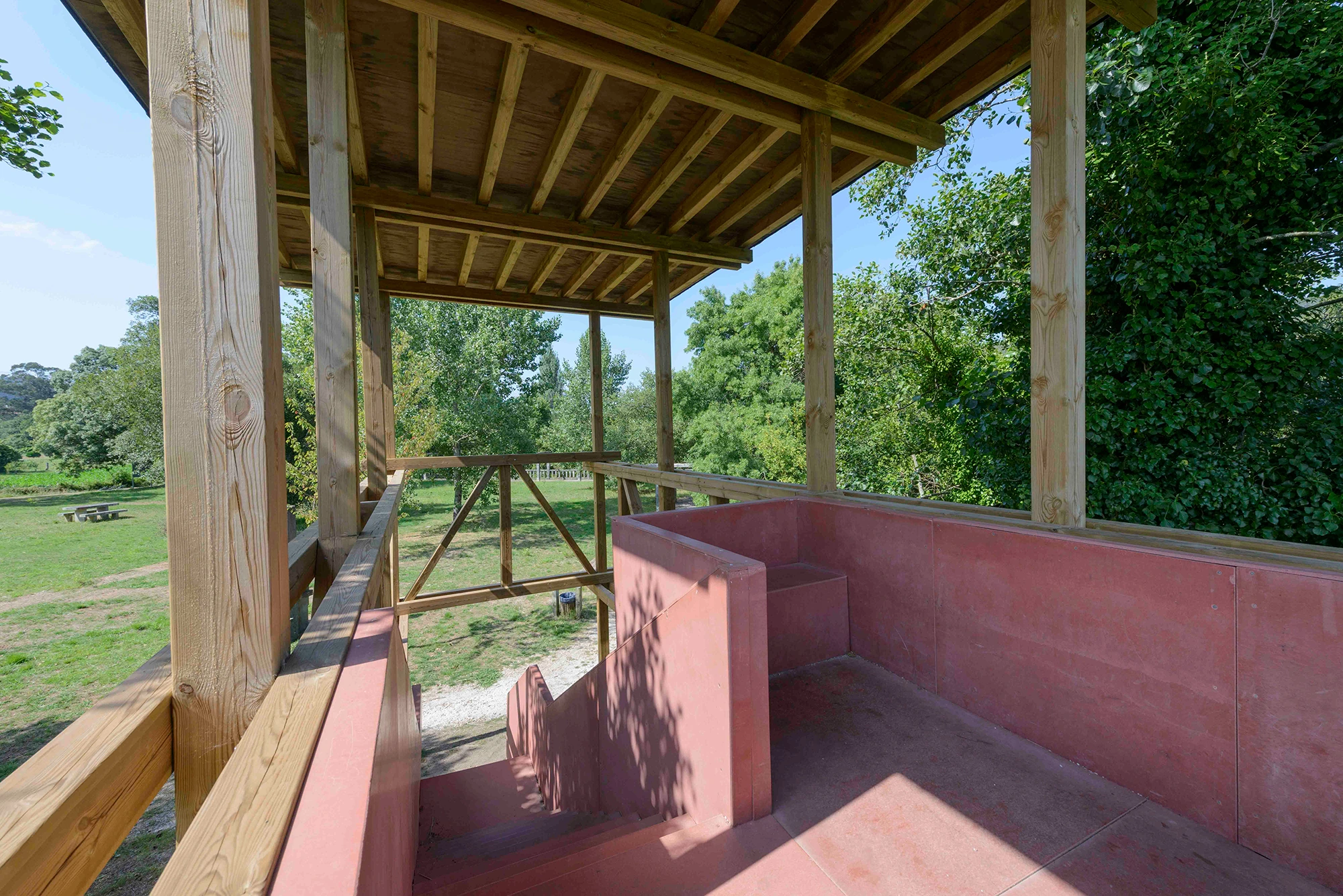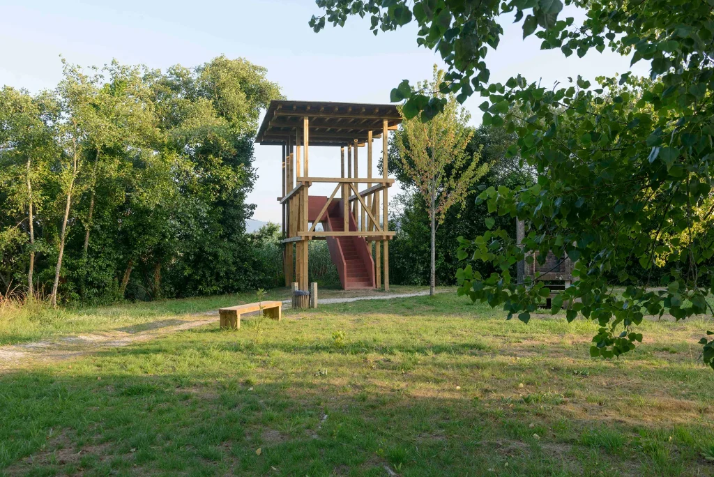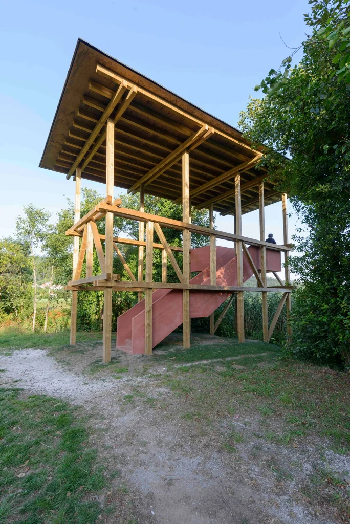 Se hacen trabajos de regeneración paisajística para eliminar especies alóctonas y favorecer una mayor permeabilidad visual entre el parque y la ría de Muros Noia. De esta intención de reforzar la relación entre el parque y la ría, se erige un mirador a modo de observatorio de la ría de Muros Noia a través de una estructura sencilla integrada en el paisaje.