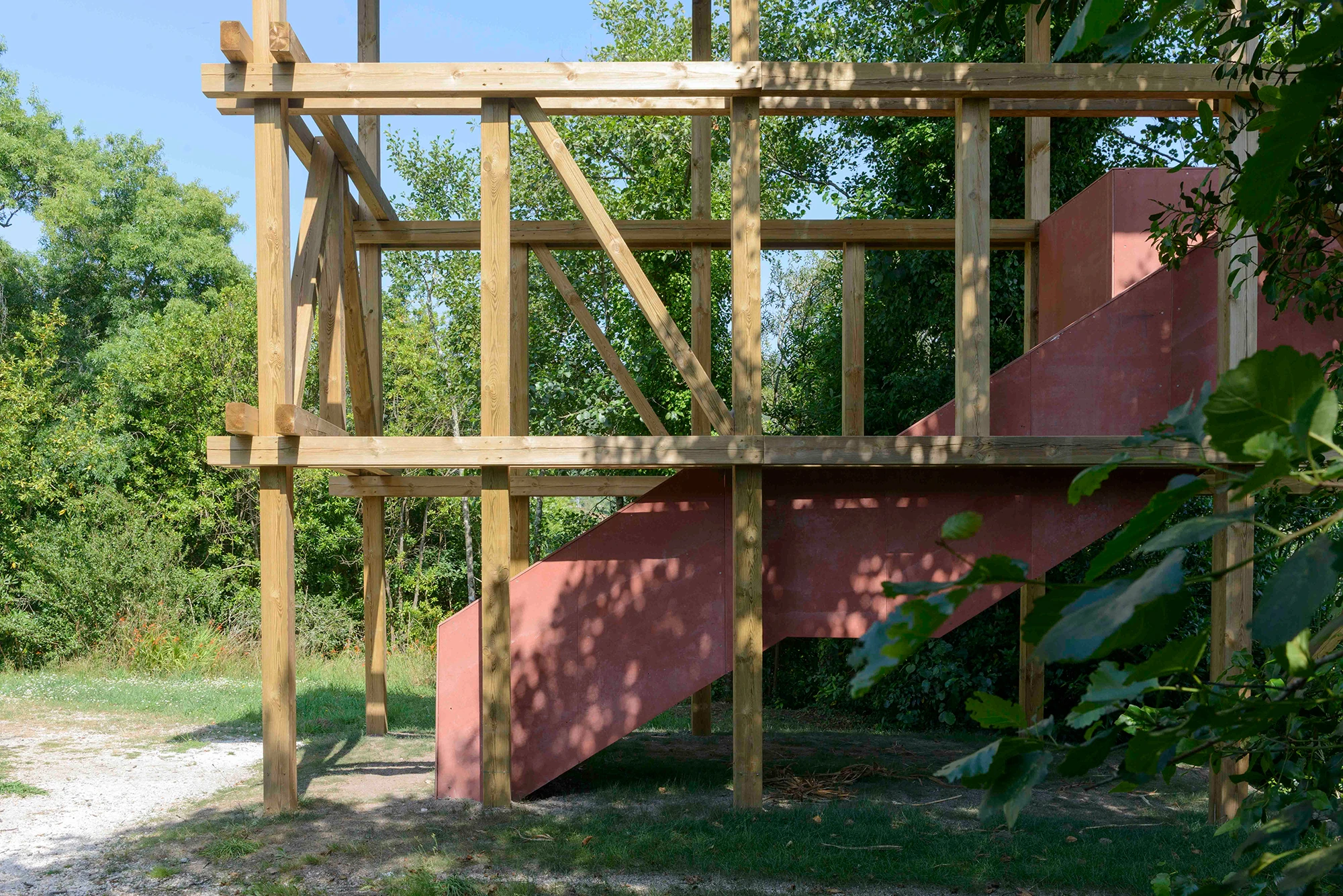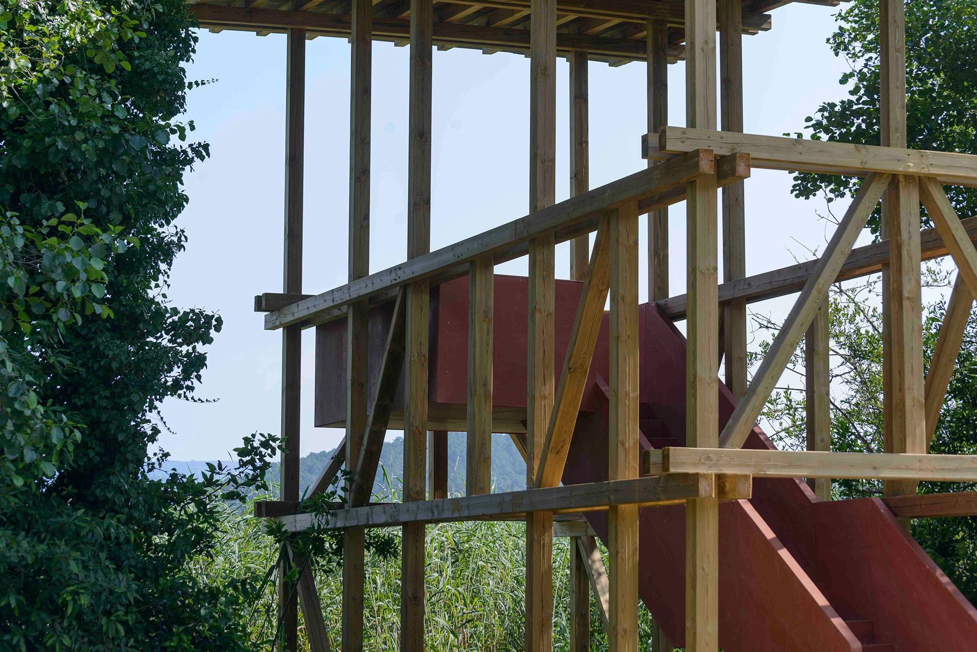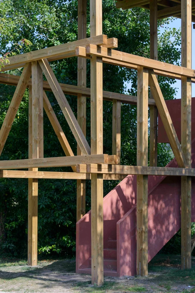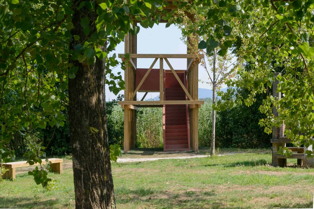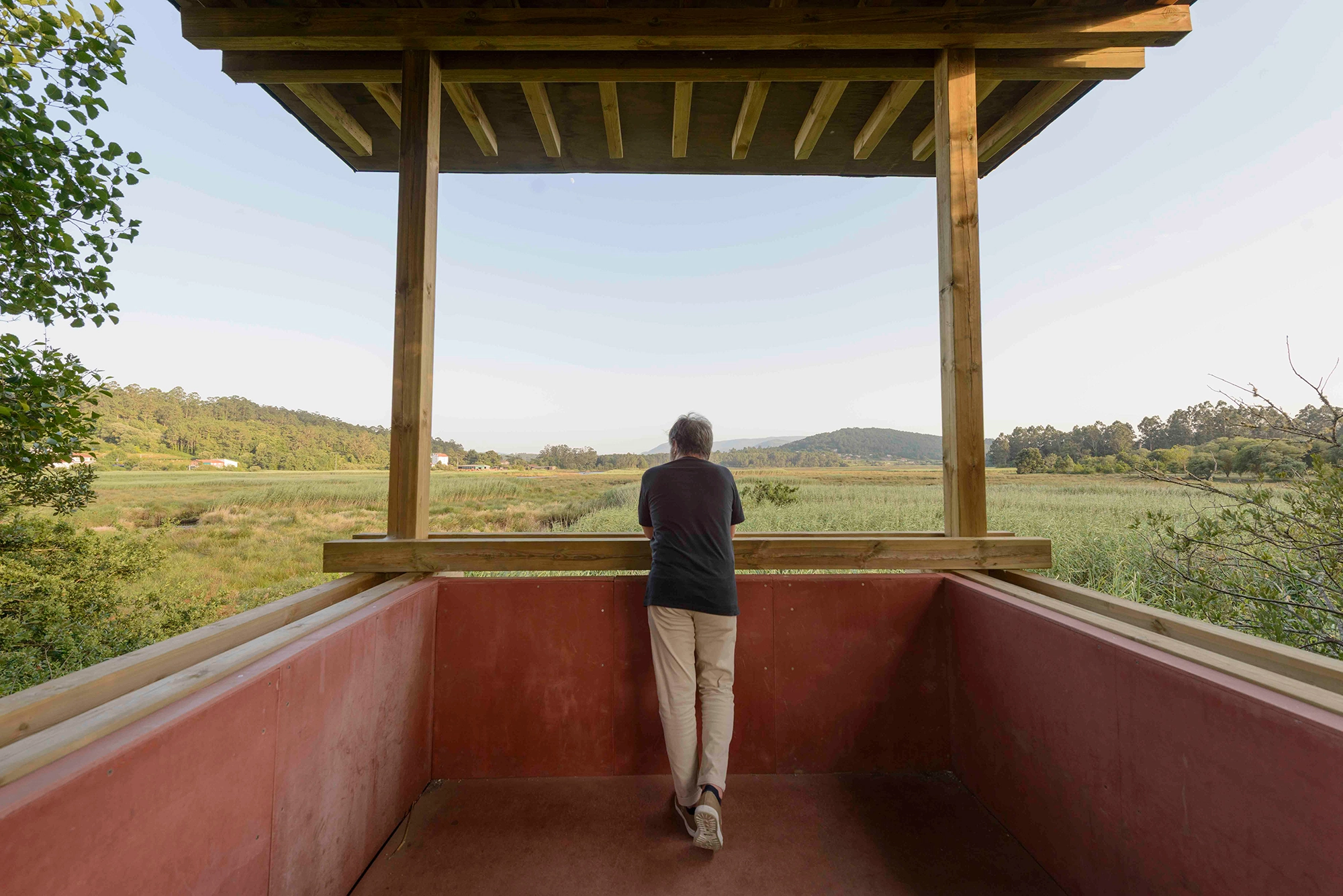 Se hacen trabajos de regeneración paisajística para eliminar especies alóctonas y favorecer una mayor permeabilidad visual entre el parque y la ría de Muros Noia. De esta intención de reforzar la relación entre el parque y la ría, se erige un mirador a modo de observatorio de la ría de Muros Noia a través de una estructura sencilla integrada en el paisaje.